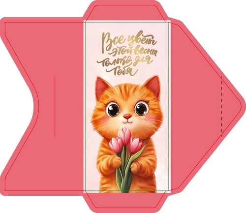 Открытка-конверт 16.8*8.3 см Рыжий кот с букетом 539259