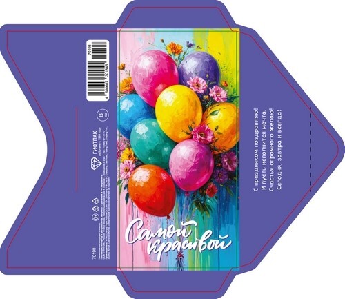 Открытка-конверт 16.8*8.3 см Самой красивой (шарики) 539198
