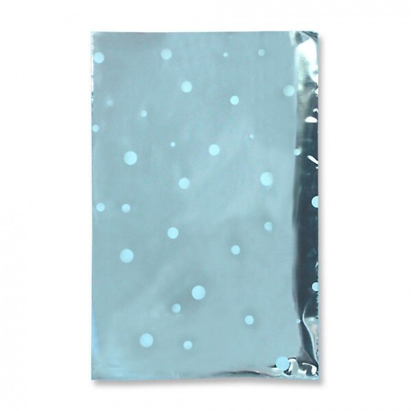Пакет подарочный фольга металл с белым рисунком 10*15 см "Горох" 100 шт/уп