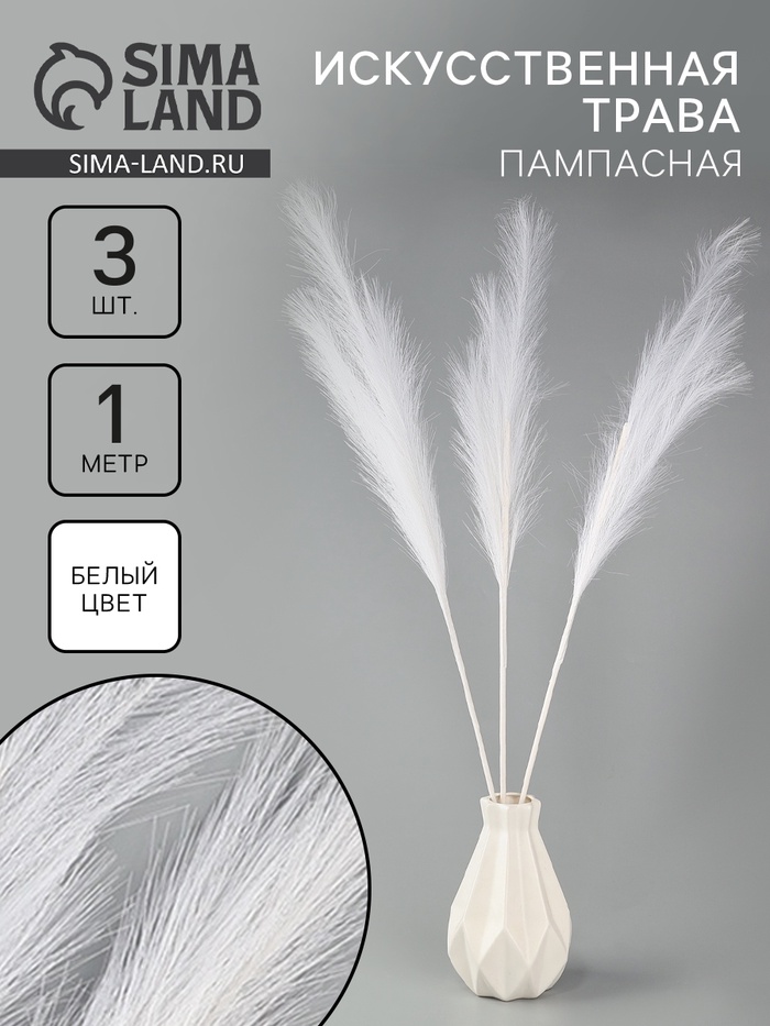 Пампасная искусственная трава высота 1 метр, набор 3 шт., цвет белый