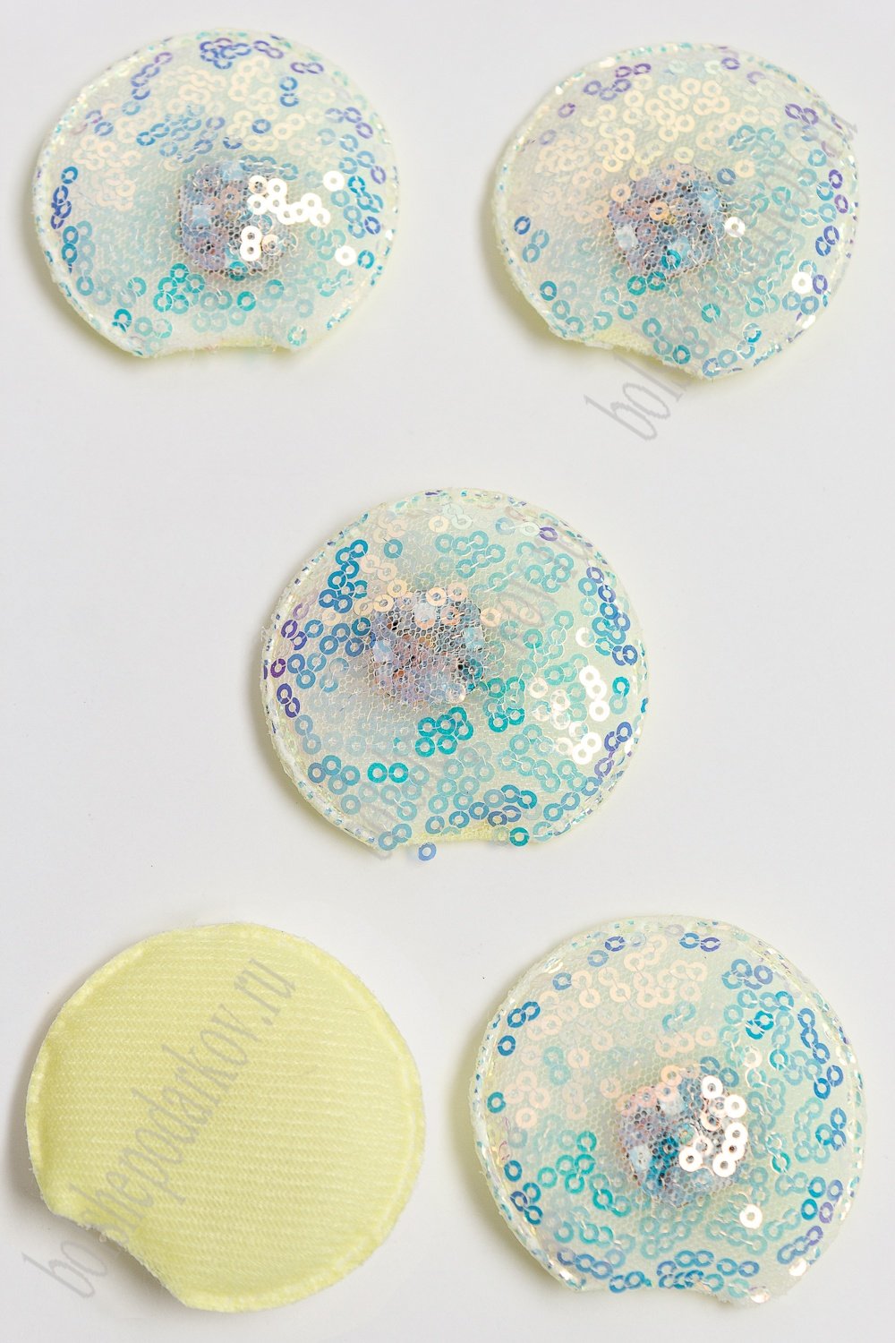 Патч с пайетками "Ушки круглые" 5,5*5 см (5 шт) SF-3165, лимонный УЦЕНКА