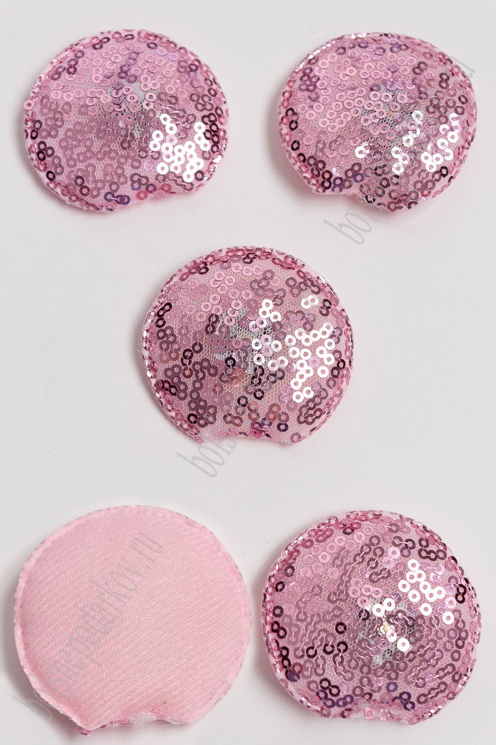 Патч с пайетками "Ушки круглые" 5,5*5 см (5 шт) SF-3165, розовый УЦЕНКА