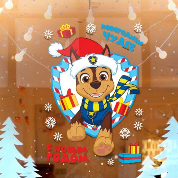 Наклейка интерьерная «С новым годом!», Щенячий патруль