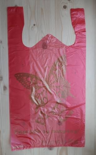 Полиэтиленовый пакет майка ПНД 12 мкм 26+14х48 см Бабочки красный 100 шт