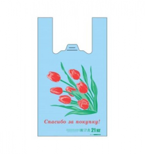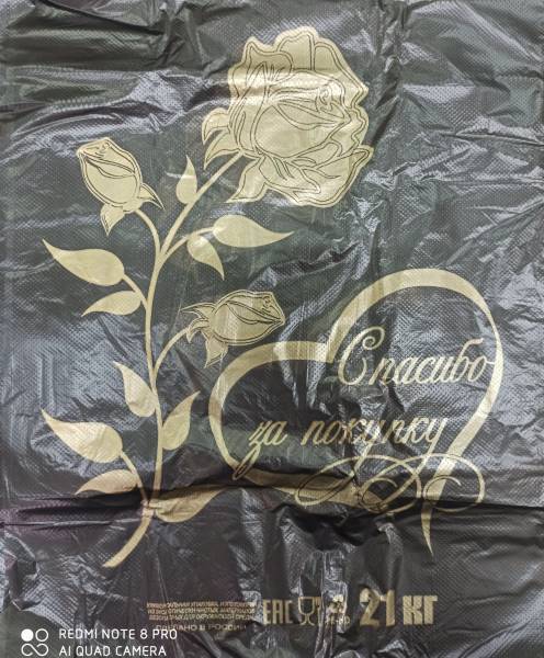 Полиэтиленовый пакет майка ПНД 12 мкм 26+14х48 см Спасибо за покупку Роза на черном 100 шт