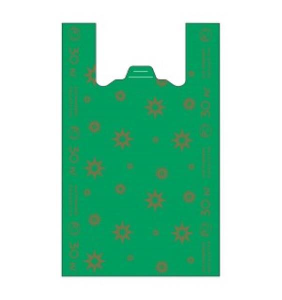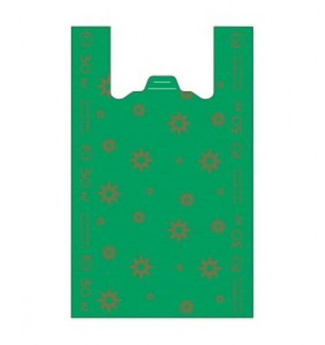 Полиэтиленовый пакет майка ПНД 15 мкм 33х53 см Звезды Зеленая 100 шт