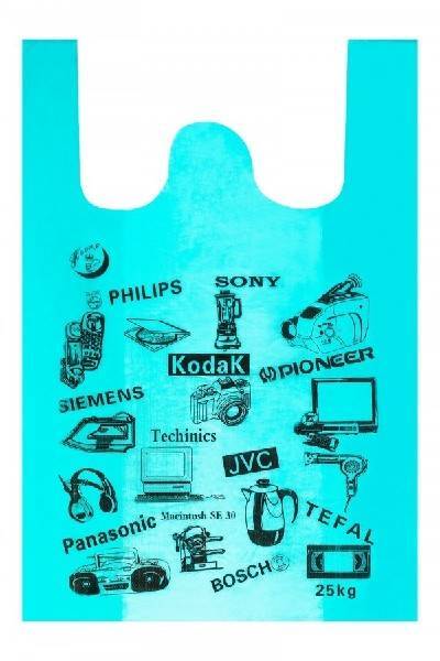 Полиэтиленовый пакет майка ПНД 17 мкм 41+18х72 см Электроника бирюзовый 50 шт