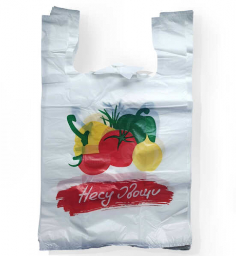 Полиэтиленовый пакет майка ПНД 18 мкм 29+16х48 см Несу овощи 100 шт