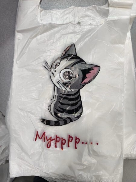 Полиэтиленовый пакет майка ПНД 8 мкм 26+14х48 см Котик белый 100 шт