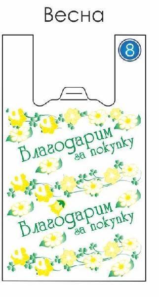 Полиэтиленовый пакет майка ПНД 9 мкм 26+14х48 см Благодарим за покупку Весна 100 шт