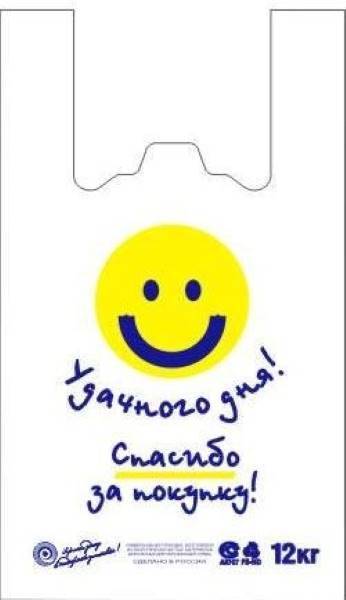 Полиэтиленовый пакет майка ПНД 9 мкм 26+14х48 см Спасибо за покупку-Удачного дня 100 шт