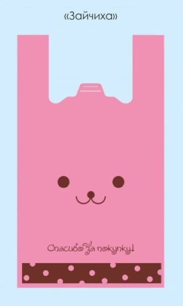 Полиэтиленовый пакет майка ПНД 9 мкм 26+14х48 см Зайчиха розовый 100 шт