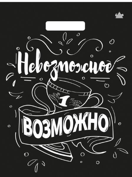 Полиэтиленовый пакет ПВД с прорубной ручкой 60 мкм 31х40 см Невозможное возможно 50 шт