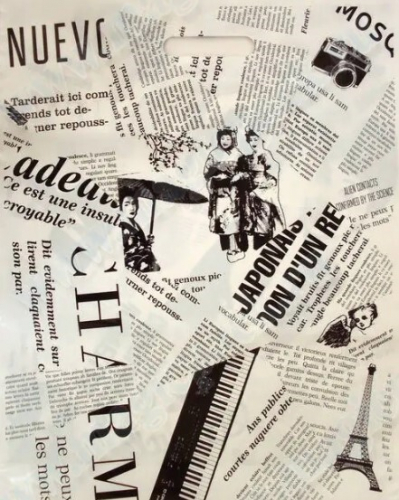 Полиэтиленовый пакет ПВД с прорубной ручкой 85 мкм 39х49 см Газета 50 шт