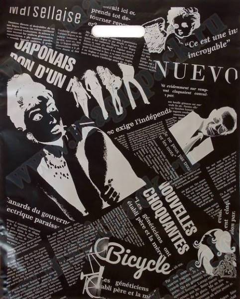 Полиэтиленовый пакет ПВД с прорубной ручкой 85 мкм 39х49 см Газета черная 50 шт