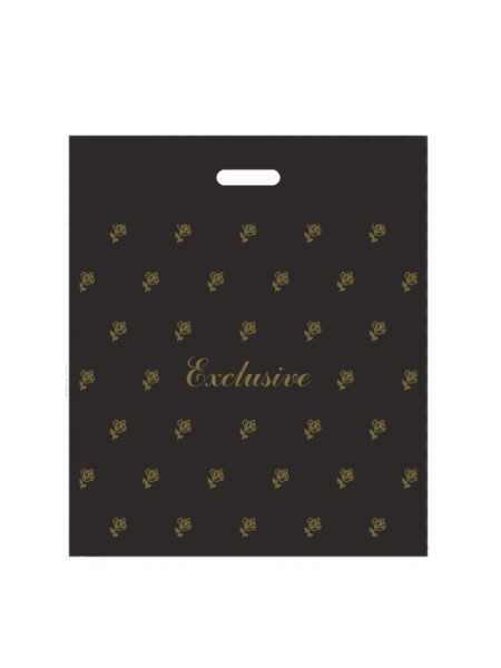 Полиэтиленовый пакет ПВД с прорубной ручкой 90 мкм 40х47 см Эксклюзив розы черный 50 шт