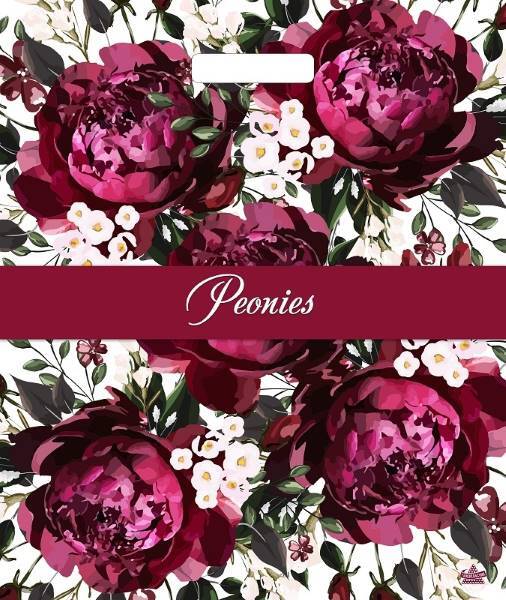Полиэтиленовый пакет ПВД с вырубной ручкой 60 мкм 38х45 см Бордовые пионы 50 шт