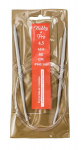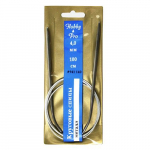 Легкие спицы из практичного алюминия. С закругленными концами. Покрытие из тефлона обеспечивает гладкое скольжение пряжи. Для удобного перекидывания петель спицы слегка изогнуты и сужаются на переходе к тросику.