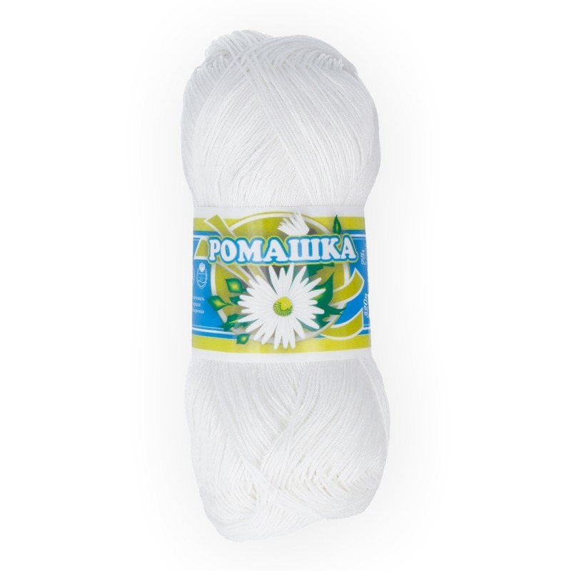 Пряжа СПБ "Ромашка" 100% мерсеризованный хлопок 4 х 75 г 320 м №0101 (001) БЕЛЫЙ