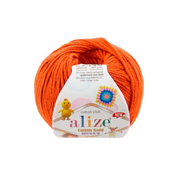 Пряжа Ализе Коттон Голд Хобби NEW (55% хлопок) 50 г. 165 м. Оранжевый 37