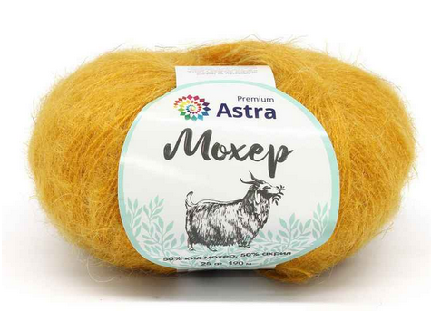 Пряжа Astra Premium 'Мохер' (Mohair) 25гр. 80м (50% кид мохер, 50% акрил) (23 горчичный)