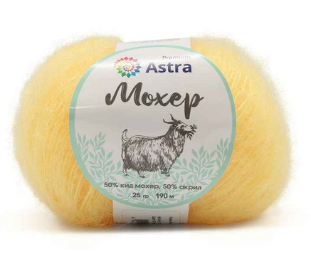 Мохер' (Mohair) – полушерстяная пряжа от Astra Premium с выраженным ворсом. В составе пряжи – шерсть кид мохер родом из Южной Африки. Волокно кид мохер получают при стрижке полугодовалых козлят ангорской породы. Такая шерсть особенно тонкая, мягкая и отлично согревает. Вещи из пряжи 'Мохер' (Mohair) очень пушистые, с длинным ворсом. После влажной тепловой обработки ворс становится еще более выраженным.