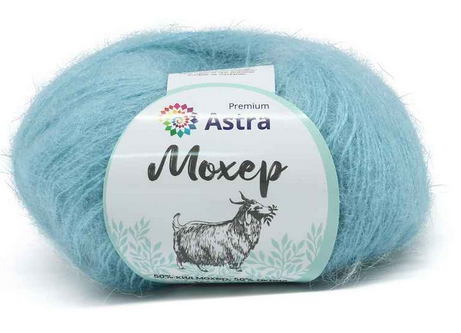 Мохер' (Mohair) – полушерстяная пряжа от Astra Premium с выраженным ворсом. В составе пряжи – шерсть кид мохер родом из Южной Африки. Волокно кид мохер получают при стрижке полугодовалых козлят ангорской породы. Такая шерсть особенно тонкая, мягкая и отлично согревает. Вещи из пряжи 'Мохер' (Mohair) очень пушистые, с длинным ворсом. После влажной тепловой обработки ворс становится еще более выраженным.