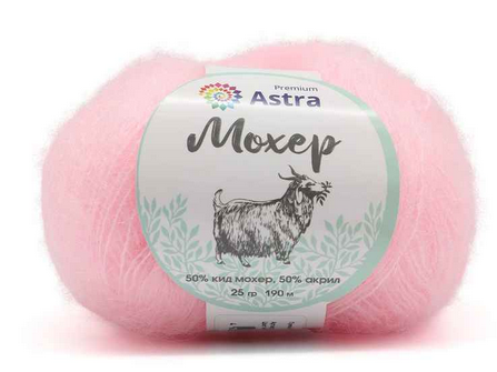 Пряжа Astra Premium 'Мохер' (Mohair) 25гр. 80м (50% кид мохер, 50% акрил) (40 нежно-розовый)