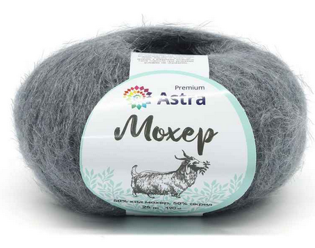 Мохер' (Mohair) – полушерстяная пряжа от Astra Premium с выраженным ворсом. В составе пряжи – шерсть кид мохер родом из Южной Африки. Волокно кид мохер получают при стрижке полугодовалых козлят ангорской породы. Такая шерсть особенно тонкая, мягкая и отлично согревает. Вещи из пряжи 'Мохер' (Mohair) очень пушистые, с длинным ворсом. После влажной тепловой обработки ворс становится еще более выраженным.