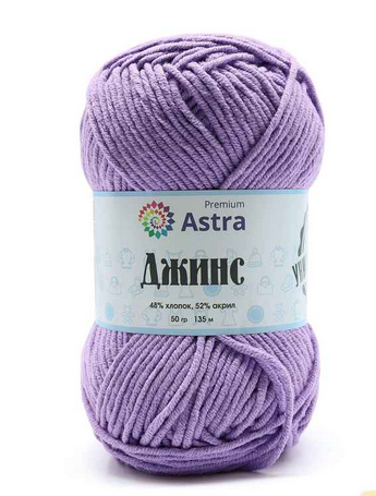 Пряжа Astra Premium 'Джинс' (Jeans) 50гр 135м (48% хлопок, 52% акрил) (750 фиолетовый)