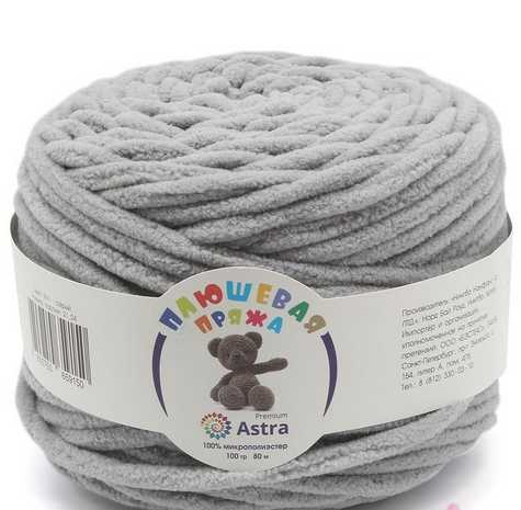 Плюшевая' от Astra Premium – пряжа тончайшим пушистым ворсом, который придает вещам мягкость и объем. Нить изготовлена 100% микрополиэстера, этот материал не раздражает кожу, сохраняет форму и цвет длительное время.