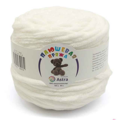 Пряжа Astra Premium 'Плюшевая' 100гр 80м (100% полиэстер) (001 белый)