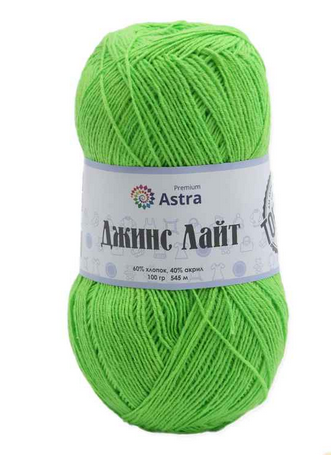 Пряжа Astra Premium 'Джинс Лайт' (Jeans Light) 100гр. 545м (60% хлопок, 40% акрил) (13 зеленый)