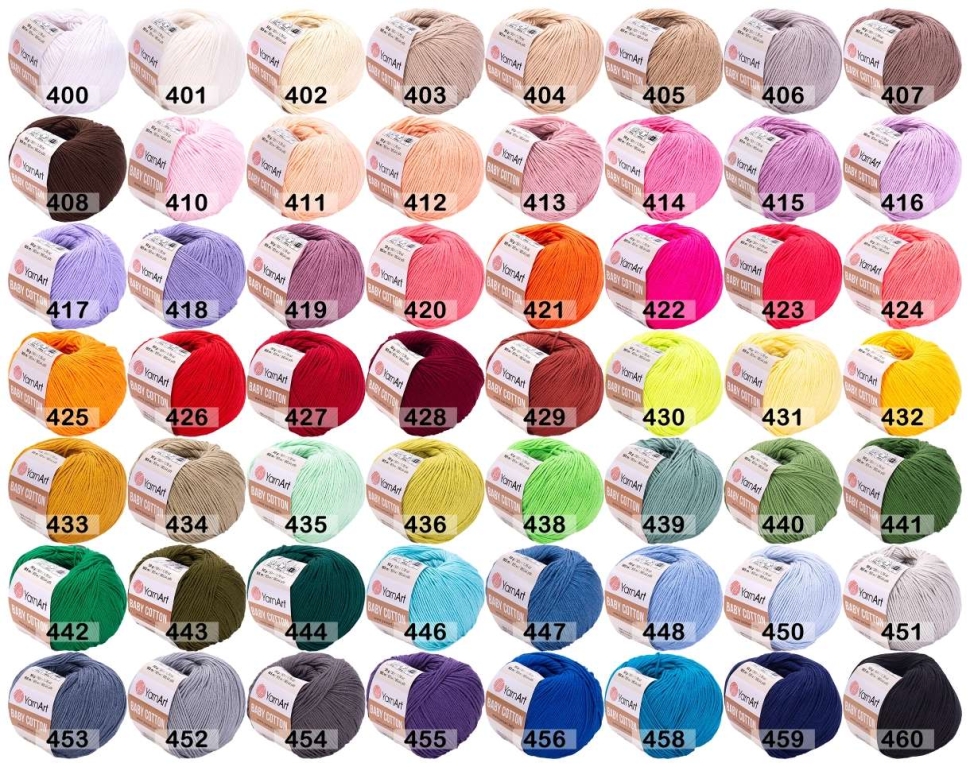 ЯрнАрт беби коттон - пряжа, которая несомненно станет незаменимым помощником в создании легких и комфортных вещей для детей на весну и прохладное лето. Средняя толщина нити позволяет вязать как ровное полотно, так и косы, открывая перед Вами массу вариантов для творческого воплощения идеи в реальность. Содержание хлопка в композиции пряжи Baby Cotton придает гигроскопичность готовым изделиям и уникальную комфортность к телу малышей, не перегревая их в жаркую погоду, и при этом обеспечивая нужное колебание температуры в прохладную летнюю погоду.