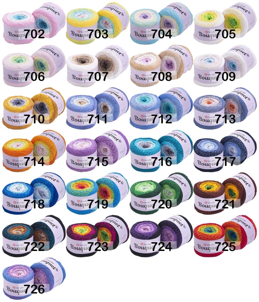 - Цветовой переход: Пряжа YarnArt Bouquet обладает великолепным градиентным эффектом, который делает каждое изделие уникальным и привлекающим внимание.