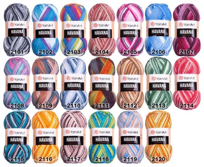 ЯрнАрт Гавана. Натуральная толстая фатназийная хлопковая пряжа подходит для вязания аксессуаров и верхней одежды на теплую погоду. Из нее можно вязать так же подушки, накидки, коврики, покрывала. Все изделия будут обладать повышенной износостойкостью. Производители рекомендуют спицы №5 и крючок №5. На вязаном образце 10х10см получается 18 рядов по 24 петель.