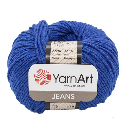 Пряжа 'Jeans' мягкая и приятная на ощупь, состоит наполовину из высококачественного хлопка, с добавлением полиакрила, что позволяет изделию отлично держать форму, придает устойчивость к усадке. Пряжа имеет равномерное окрашивание, сохраняет цвет после стирки.