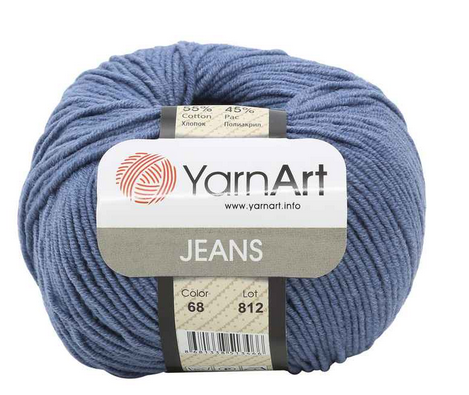 Пряжа YarnArt 'Jeans' 50гр 160м (55% хлопок, 45% полиакрил) (68 джинсовый), 68