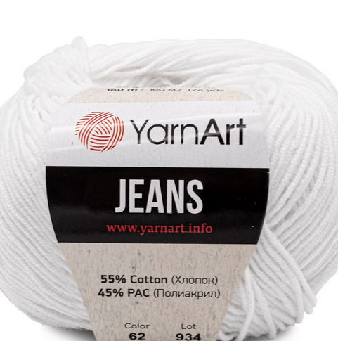 Пряжа 'Jeans' мягкая и приятная на ощупь, состоит наполовину из высококачественного хлопка, с добавлением полиакрила, что позволяет изделию отлично держать форму, придает устойчивость к усадке. Пряжа имеет равномерное окрашивание, сохраняет цвет после стирки.