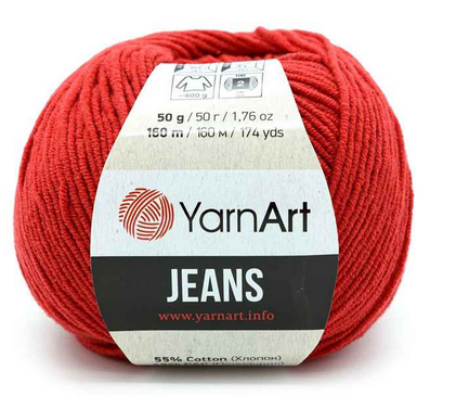 Пряжа YarnArt 'Jeans' 50гр 160м (55% хлопок, 45% полиакрил) (90 красный), 90