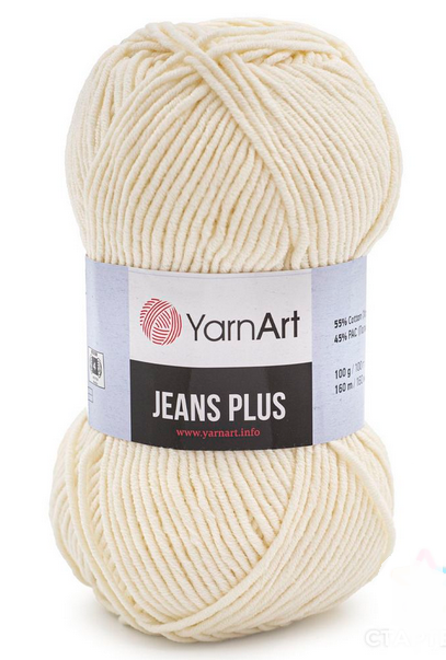 Пряжа YarnArt 'Jeans Plus' 100гр 160м (55% хлопок, 45% полиакрил) (03 молочный), 03
