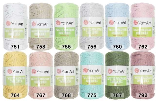 Пряжа Yarnart Macrame Twisted 3 Mm Lurex