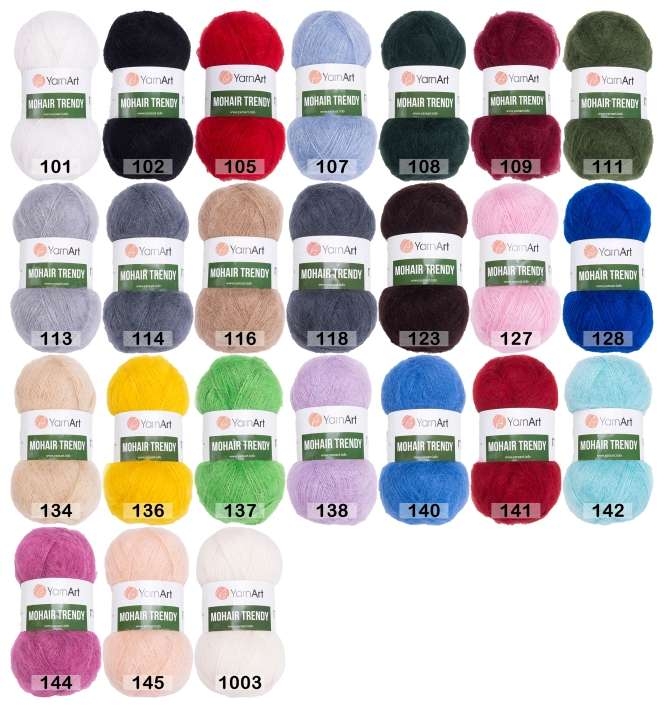 ЯрнАрт мохер тренди — это тонкая, мягкая и пушистая полушерстяная пряжа, созданная для теплых, уютных и по-настоящему комфортных изделий. Она идеально подходит для вязания кофточек, шапок, шарфов, накидок, ажурных шалей и других лёгких, воздушных моделей.