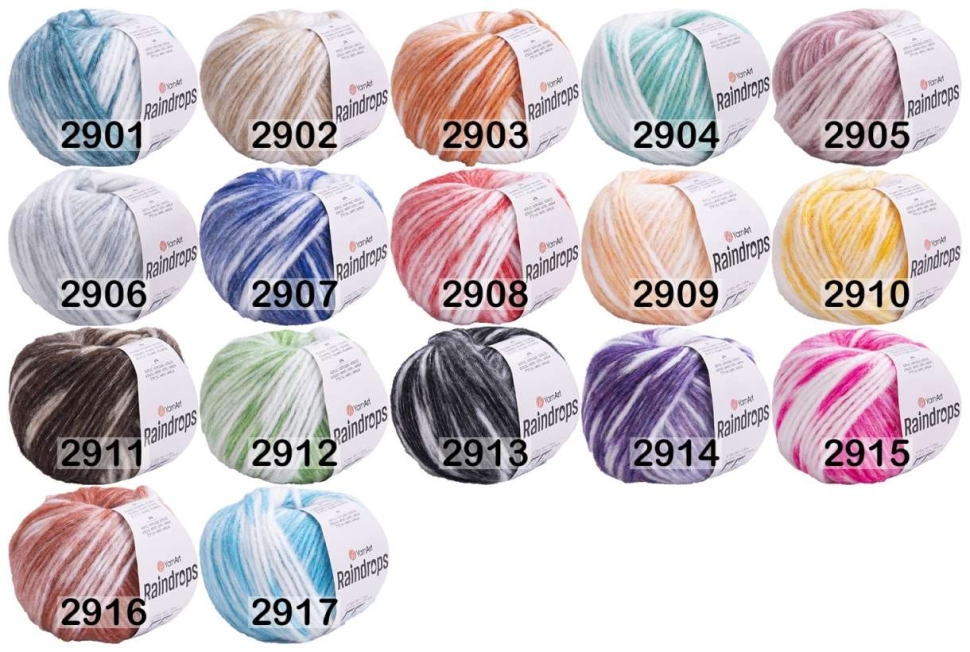 Пряжа YarnArt Рейндропс. На изделие 46 размера потребуется примерно 400 грамм пряжи. Плотность вязания 22*17, спицы и крючок №5