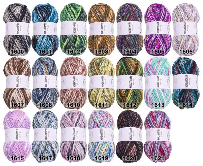 Пряжа ЯрнАрт Революшн. Очень толстая ровница секционного крашения. Рекомендуемый размер спиц и крючка № 9 мм