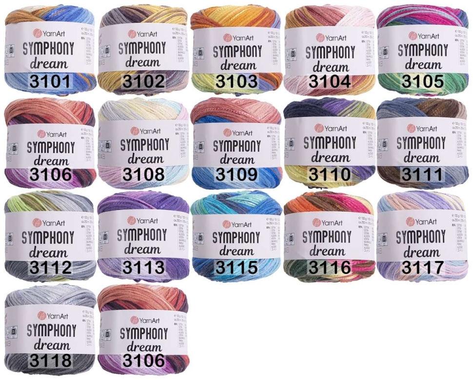 Пряжа YarnArt Симфони Дрим. На изделие 46 размера потребуется примерно 400 грамм пряжи. Плотность вязания 28*22, спицы и крючок №4