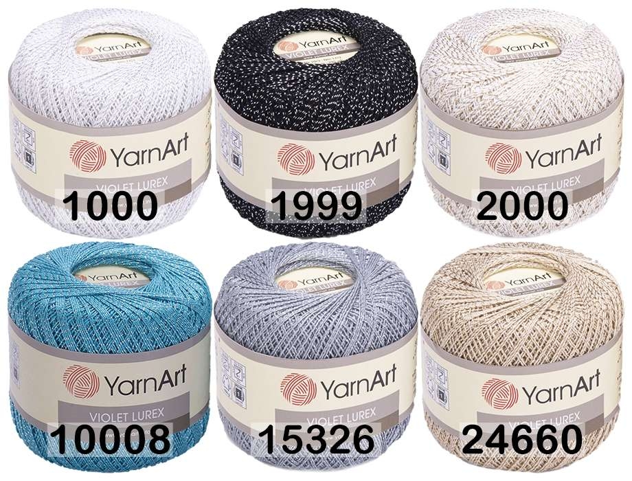 ЯрнАрт виолет люрекс. Тонкая, упругая пряжа, с добавлением блестящей ниточки, яркие расцветки. Рекомендуется ручная стирка и машинная стирка в деликатном режиме.
