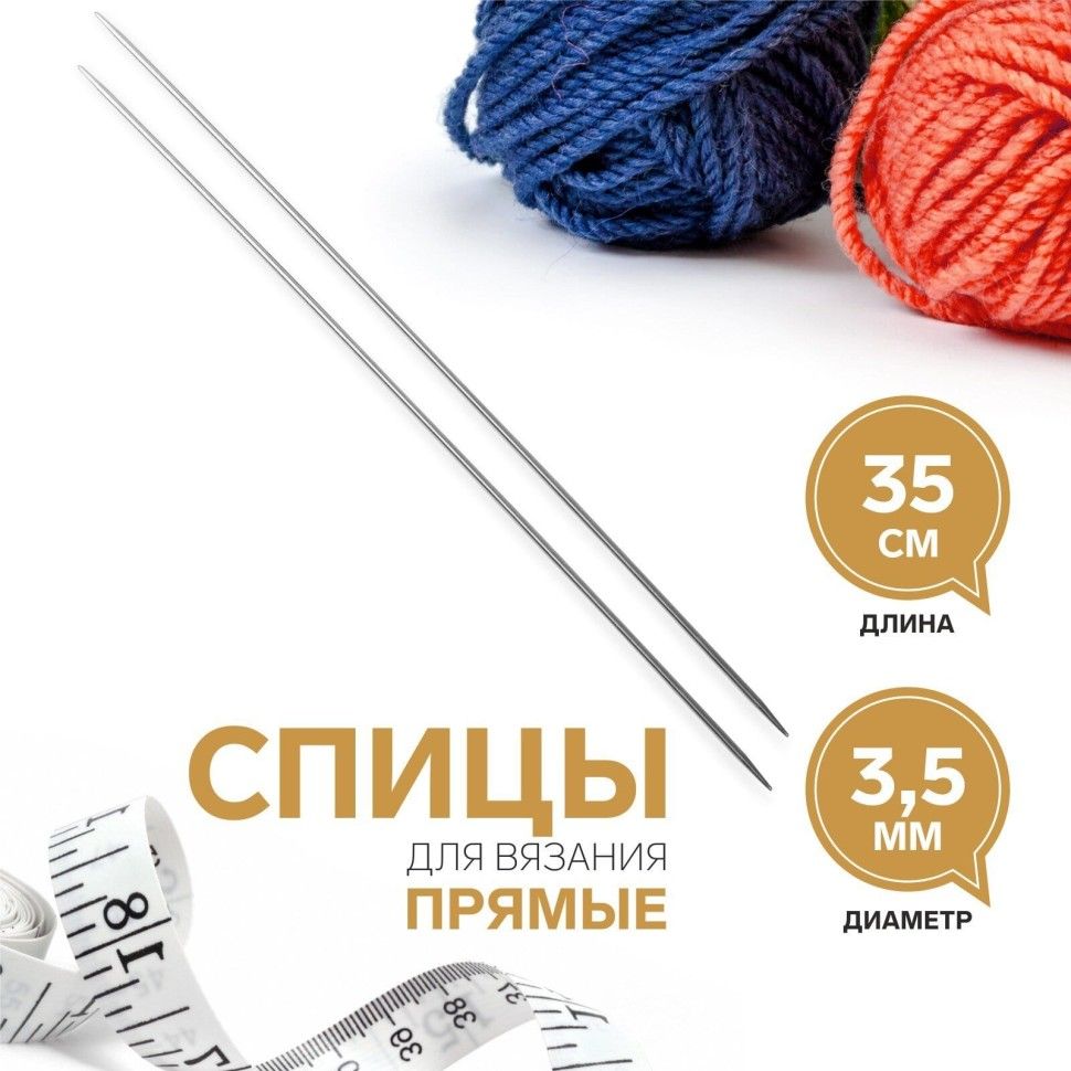 Спицы для вязания, прямые, d=3,5 мм,35 см