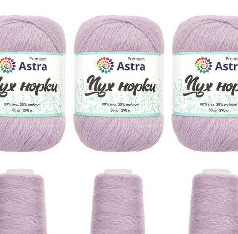Пряжа Astra Premium 'Пух норки' (Mink) 50гр 290м (80% пух, 20% нейлон) (+нить 20гр) 3мот+3 нити/упак (024 лаванда), 024