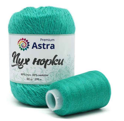 Пряжа Astra Premium 'Пух норки' (Mink yarn) 50гр 350м (80% пух, 20% нейлон) (нить 20гр в комплекте) (041 светлая мята), 041